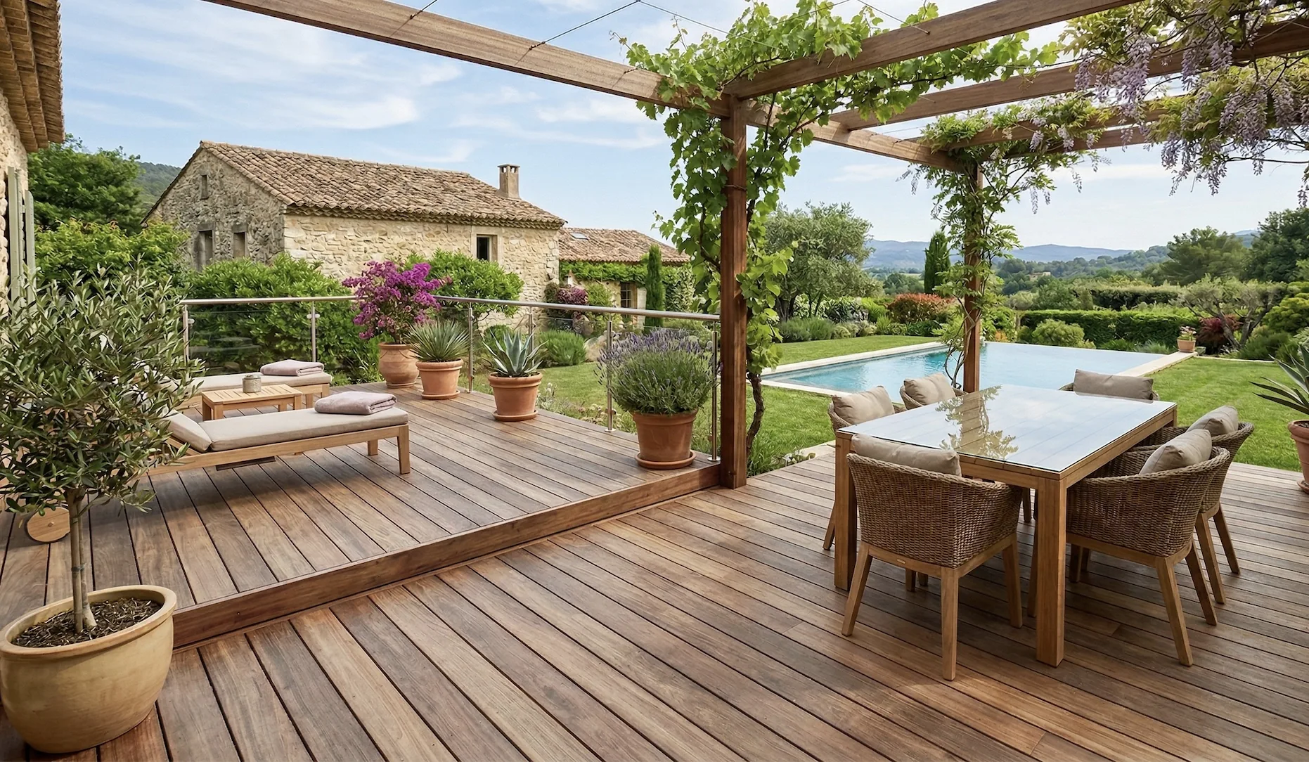 - Chêne : naturellement résistant (classe d’emploi 2 à 3 après traitement), idéal pour les traverses, le mobilier extérieur, les platelages et les clôtures